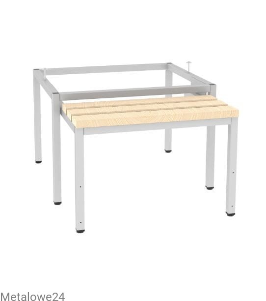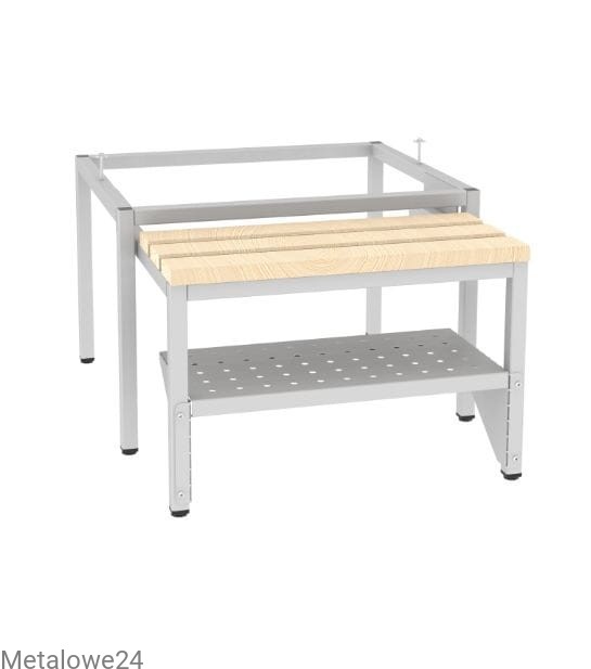 Podstawa do szaf socjalnych wysuwana. Stelaż podstawy i stelaż części wysuwnej wykonany z profili zamkniętych. Konstrukcja spawana. Nogi podstawy z regulacją wysokości. Podstawa podwyższająca szafę o 390 mm. Wyposażona w trzy listwy drewniane. Podstawa skręcana jest z szafą za pomocą śrub.