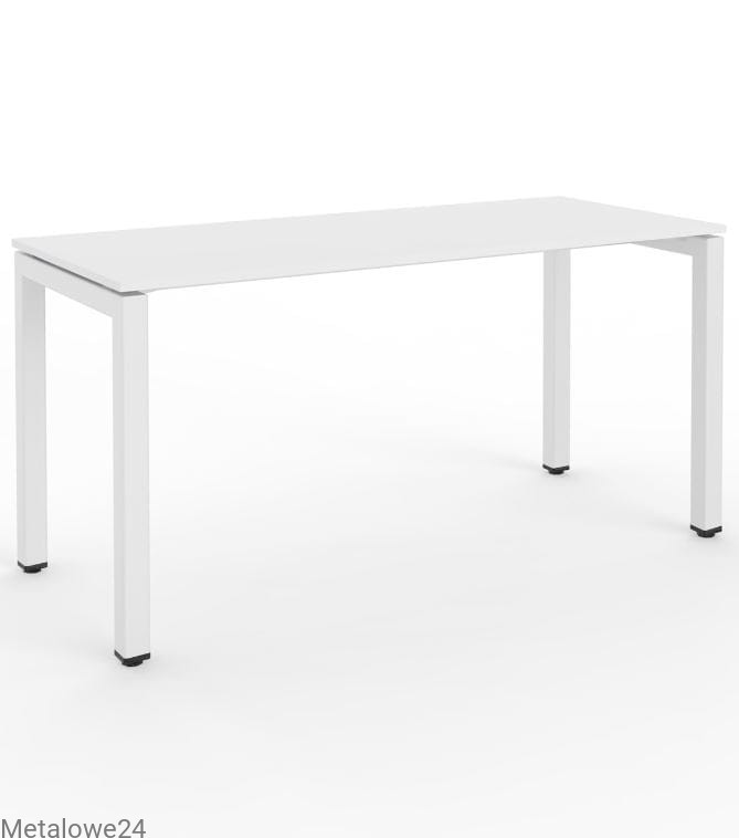 Prostokątny stół biurowy. Nogi stołu wykonane ze stalowych profili o profilu kwadratowym 50 x 50 mm wyposażone w stopki wyrównujące wysokość. Wyposażony w kanał kablowy umieszczony pod blatem umożliwiający w estetyczny sposób przechowanie kabli lub listwy zasilającej.