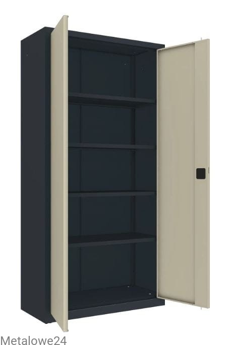 Szafa metalowa na dokumenty, teczki i inne rzeczy do dowolnego pomieszczenia w biurze i magazynie. Spawana konstrukcja zapewnia bezpieczne przechowywanie przedmiotów. Korpus szafy pomalowany na kolor RAL 7016 (szary antracytowy - grafitowy), a drzwi na kolor RAL 7032 (szary beż).