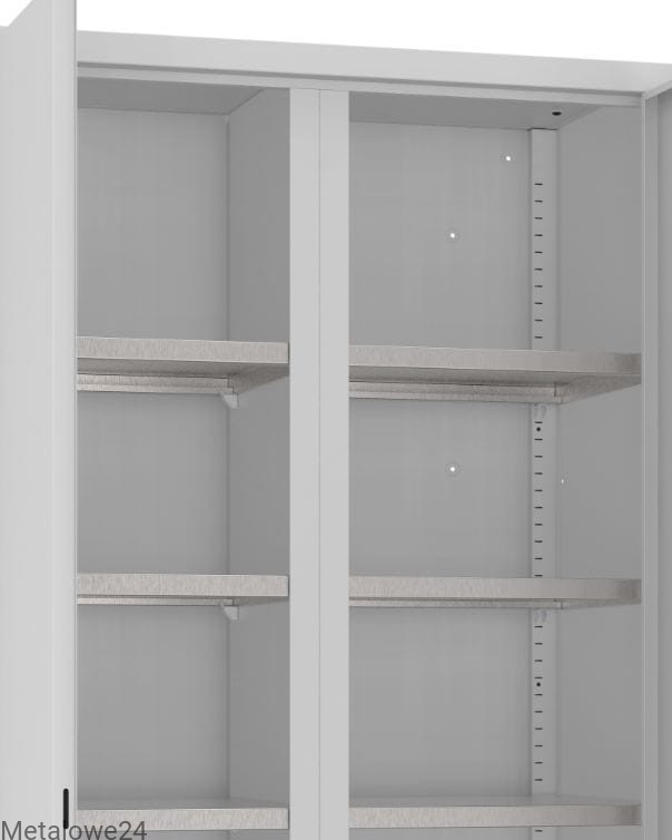 - 6 ocynkowanych półek o obciążeniu 100 kg, przestawnych co 25 mm