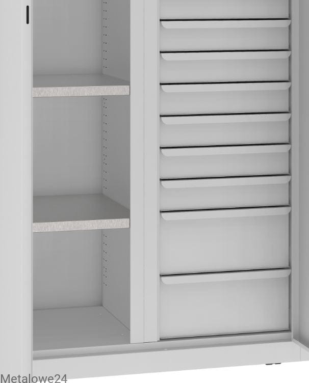 - 12 szuflad niskich o obciążeniu 40 kg, przestawne co 25 mm