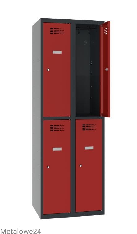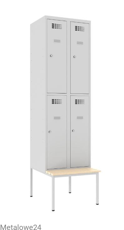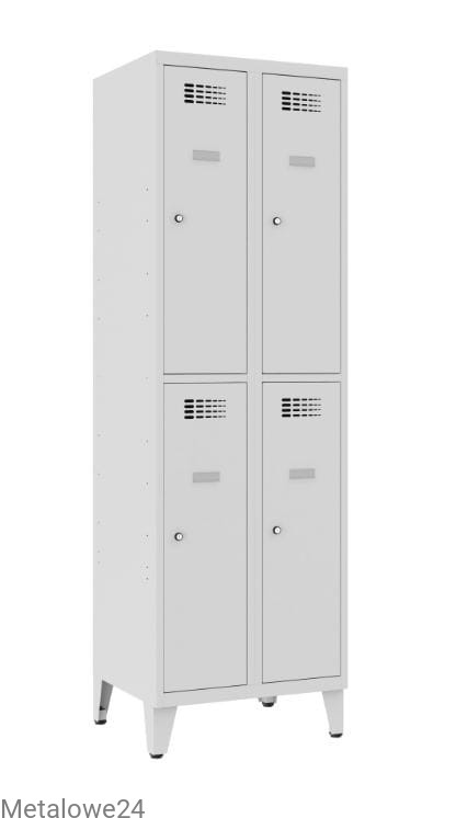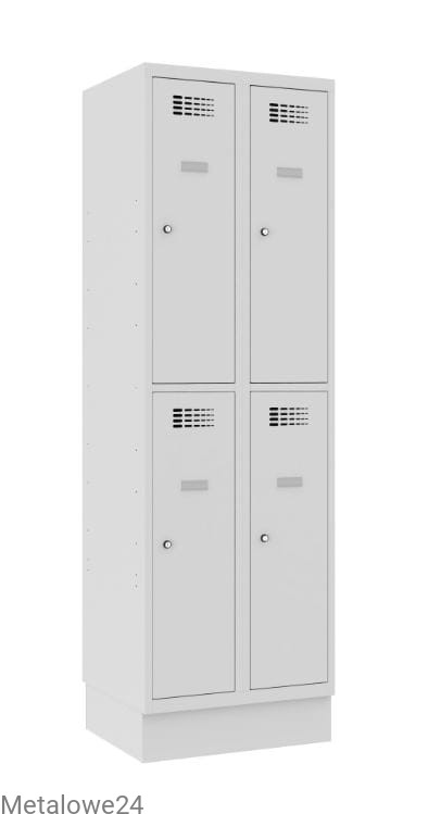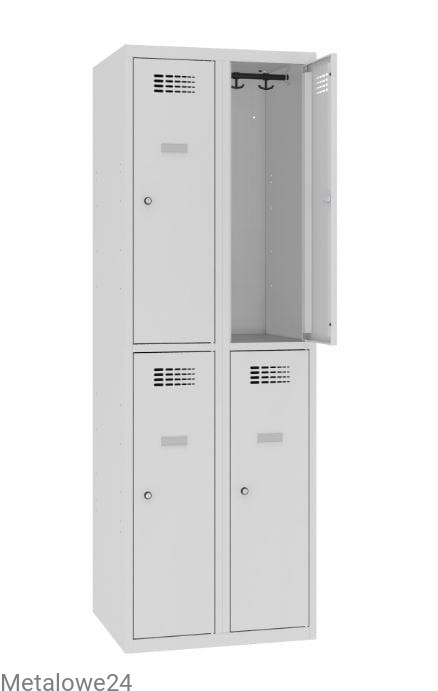 Czterokomorowa szafka skrytkowa metalowa Sus 322 W do przebieralni w miejscu pracy lub użyteczności publicznej. Wyposażenie szafki pozwala na przechowywanie odzieży wierzchniej w formie wiszącej. A zamykane na klucz skrytki zabezpieczą także rzeczy osobiste, podręczny bagaż, czy zakupy. Modułowa budowa to możliwość łączenia z innymi szafami socjalnymi w funkcjonalne ciągi meblowe. Jako opcję oferujemy różnego typu podstawy.