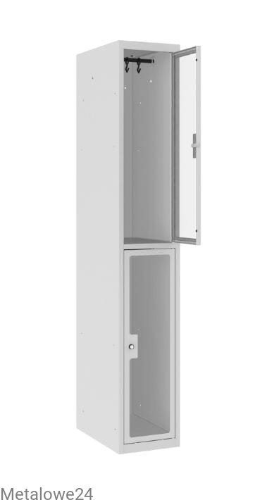 Pojedyncza szafka socjalna z dwoma przedziałami z drzwiami z pleksi - szer. modułu 30 cm. Przeznaczona do pomieszczeń socjalnych w pracy, szatni, klubów fitness, a nawet do domów. Szafa z drzwiami pleksi to idealny mebel do przechowywania drobnej garderoby i podręcznych rzeczy osobistych. W produktach powiązanych jako opcję dodatkową proponujemy socjalne podstawy z ławką stałą lub wysuwaną oraz różnego typu podstawy zwykłe.