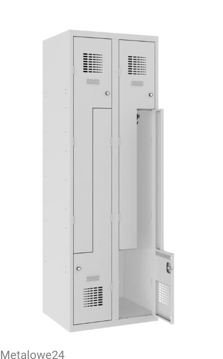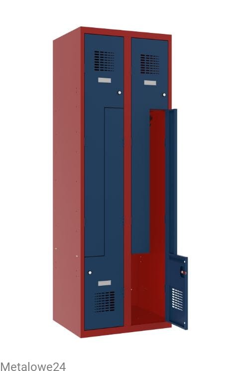 Funkcjonalna szafka do szatni na odzież Sul 32 W z czterema komorami ubraniowymi. Przegroda typu "L" zwiększa dwukrotnie liczbę użytkowników. Przestrzeń robocza co prawda jest mniejsza, ale gdy przechowywanych ubrań nie jest wiele to w zupełności wystarcza. Szafka szatniowa metalowa dedykowana do pomieszczeń socjalnych w zakładach pracy i do szatni szkolnych. Jest możliwość malowania w dwóch kolorach z naszej palety barw.