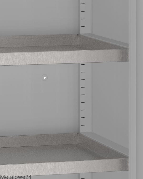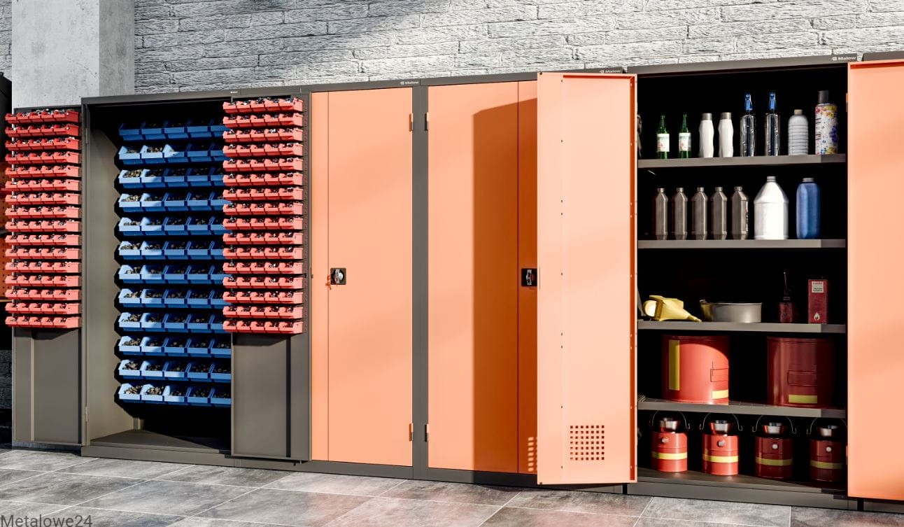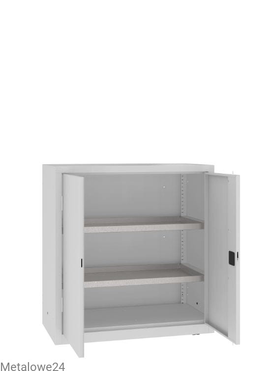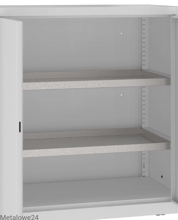 Niska metalowa szafka z półko-wanienkami przeznaczona głównie do przechowywania materiałów ciekłych w pojemnikach, puszkach lub butelkach. Szafka wyposażona w specjalne uszczelniane ocynkowane półko-wanienki o wytrzymałości 60 kg każda. Dedykowana do pomieszczeń garażowych, warsztatowych i magazynowych. Ujednolicenie wymiarowe tej serii szaf pozwala na tworzenie ciągów meblowych z innymi szafkami narzędziowymi.