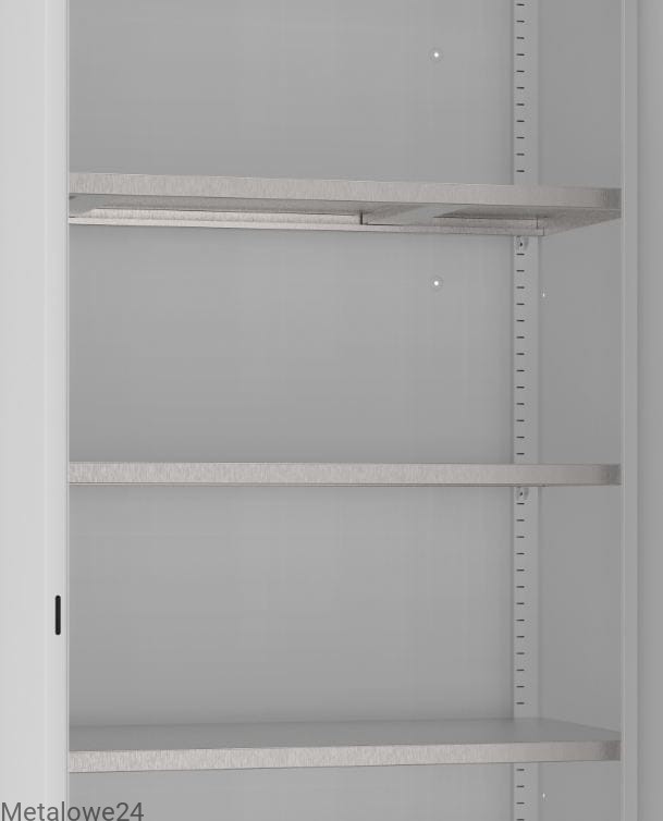 - 4 wzmacniane ocynkowane półki o obciążeniu 100 kg, przestawne co 25 mm