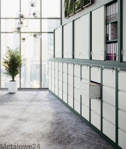 Metalowa szafka kartotekowa Skb 210 na teczki zawieszkowe formatu A4 zawieszane w poprzek. Szafka o głębokości 43,5 cm jest dopasowana głębokością do szaf biurowych Sbm, aby tworzyć ciąg przy zabudowie biurowej wraz z szafami. Szafka spełnia wymagania przechowywania RODO.