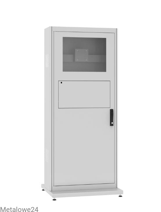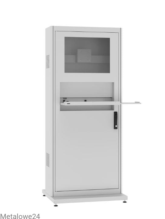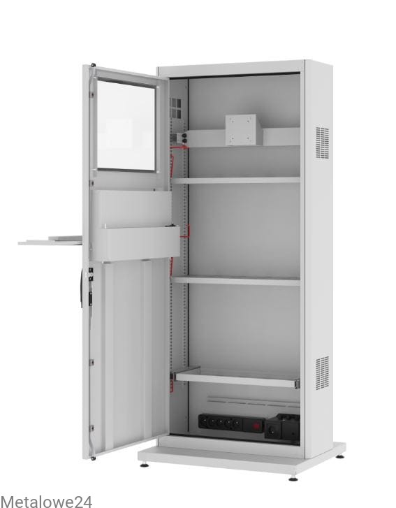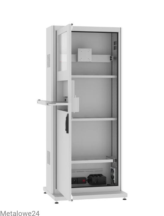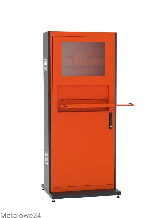 Szafa na komputer z klasą szczelności IP42 przeznaczona do zabezpieczania i użytkowania sprzętu komputerowego w warunkach przemysłowych. Chroni głównie przed uszkodzeniami mechanicznymi, wilgocią, pyłem i dostępem osób niepowołanych. Sprawdzi się w środowiskach produkcyjnych, fabrykach, warsztatach, stolarniach itp. Przestawne półki pomagają dostosować przestrzeń wewnątrz szafy tak, by pomieścić komputer i dokumenty.
